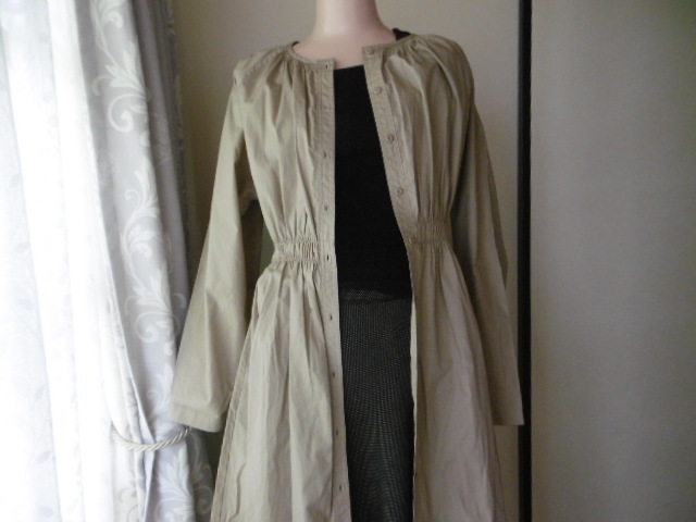 > 未使用 ehka sopo/エヘカソポ 綿100 ロングスカート シャーリングワンピース ベージュ フリーサイズ(M~L)レディース