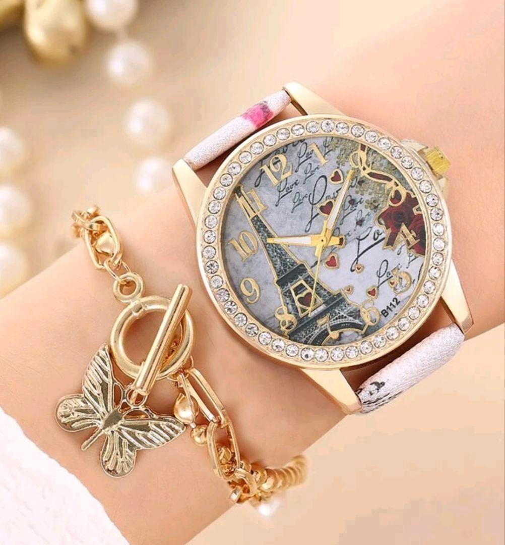 - エッフェル塔柄 ラインストーン腕時計 ブレスレットセット