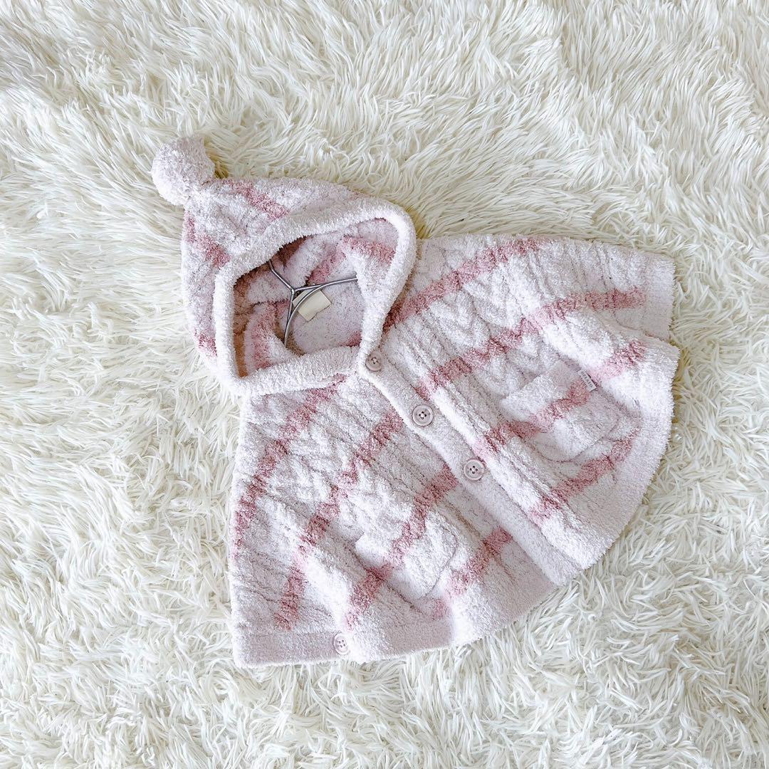 - 《ジェラートピケ》 (80-90) フード付きベビーポンチョ ケーブル編み 羽織