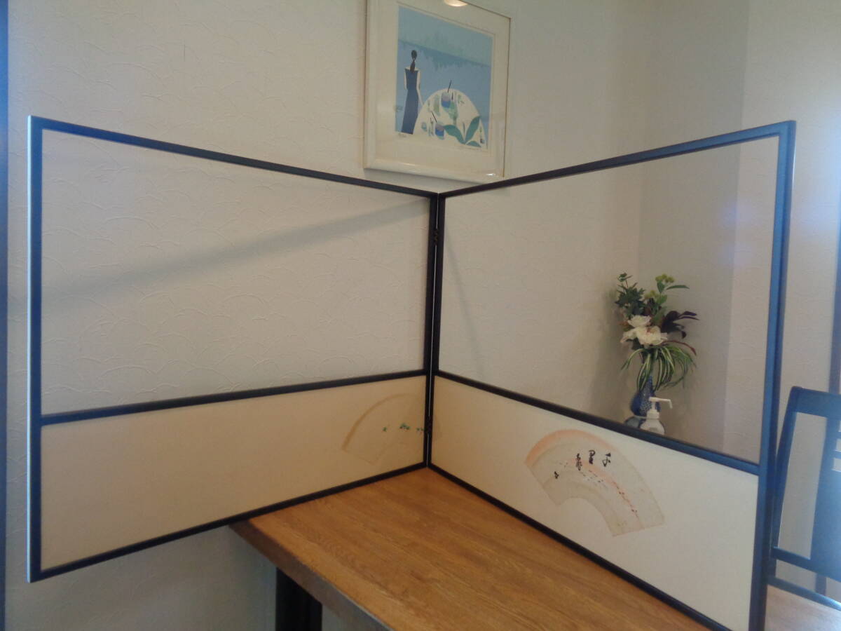 - お茶道具 風炉先屏風 格調高い風炉先屏風 扇面に美しい書が描かれています。紙箱入り