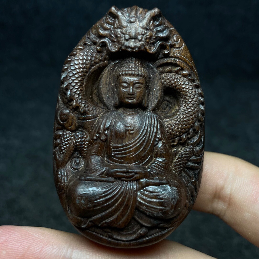 - ▽鴻▽ 沈む香木製 細密彫 觀音牌 寶石嵌 花梨木箱付 根付 裝身具 古賞物 古董品 時代物 稀少珍品 中国古玩 中国古美術
