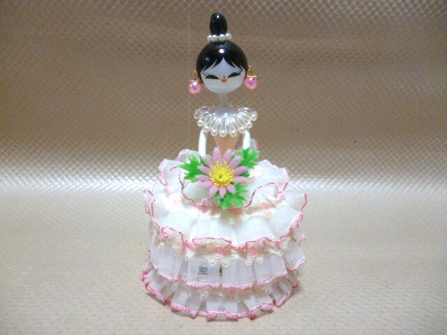 - 昭和レトロ 当時物 おみやげ 土産 城ヶ島 ドリームEVE パール風アクセサリー フリル服 花 女性 ドリーム人形 小物入れ 未使用