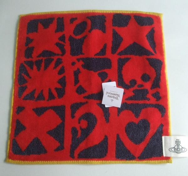 - Vivienne Westwood ヴィヴィアン・ウエストウッド スカル・ハート・オーブ柄 タオル ハンカチ 未使用品 レッド系 百貨店