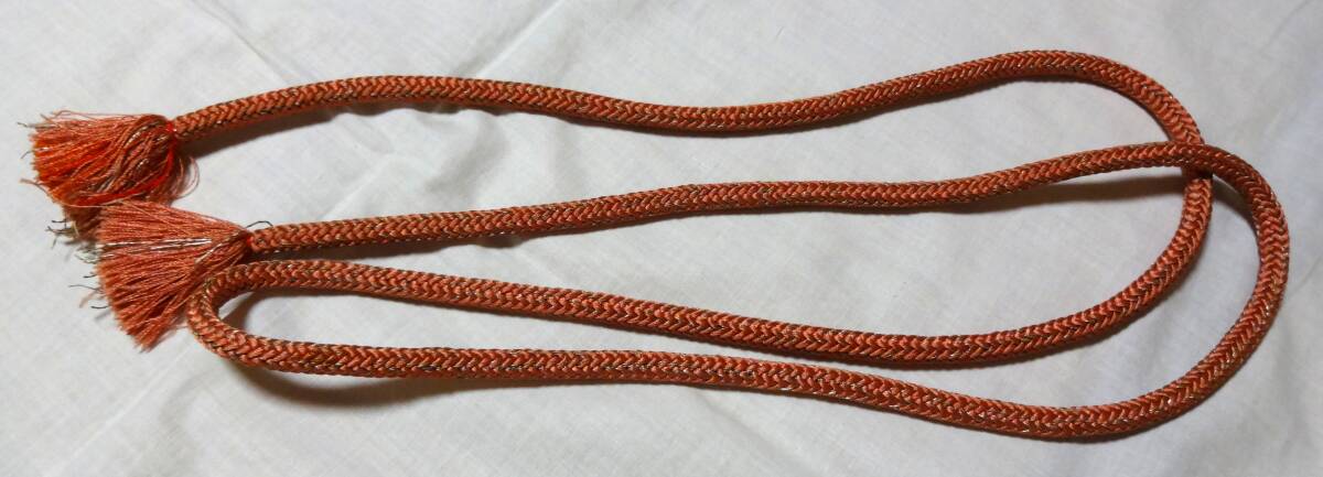 - 丸組オレンジ色の帯締め(金糸入り)、和装小物、バッグの飾りに