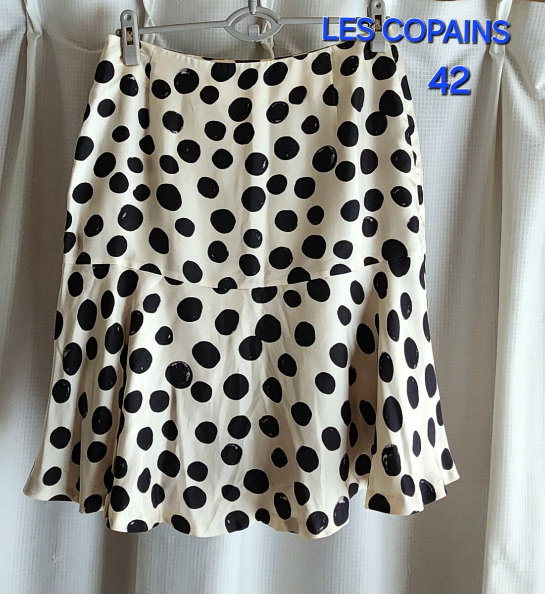 - 新品タグ付き 定価81900円 LES COPAINS 膝丈シルクスカート ドット