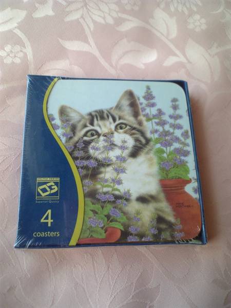 - ☆;:*♪コースター4枚組☆;:*ハーブとネコちゃん
