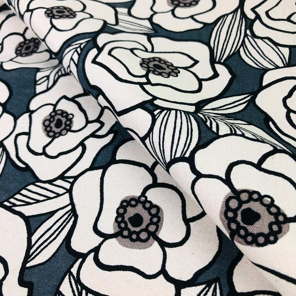 - 1m 日本製 花柄 北欧 コットン オックス 生地 はぎれ コットン 110×100 花柄 グレー