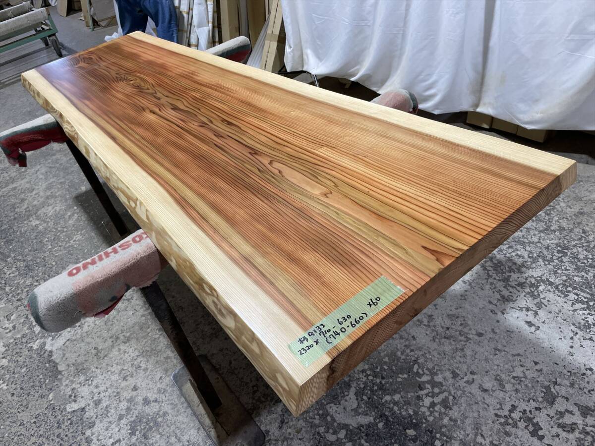 - 杉9133 一枚板無垢 2320x710-630x60mm 乾燥材 センターテーブル ダイニングテーブル ウレタン塗装 セラウッド塗装 テーブル板