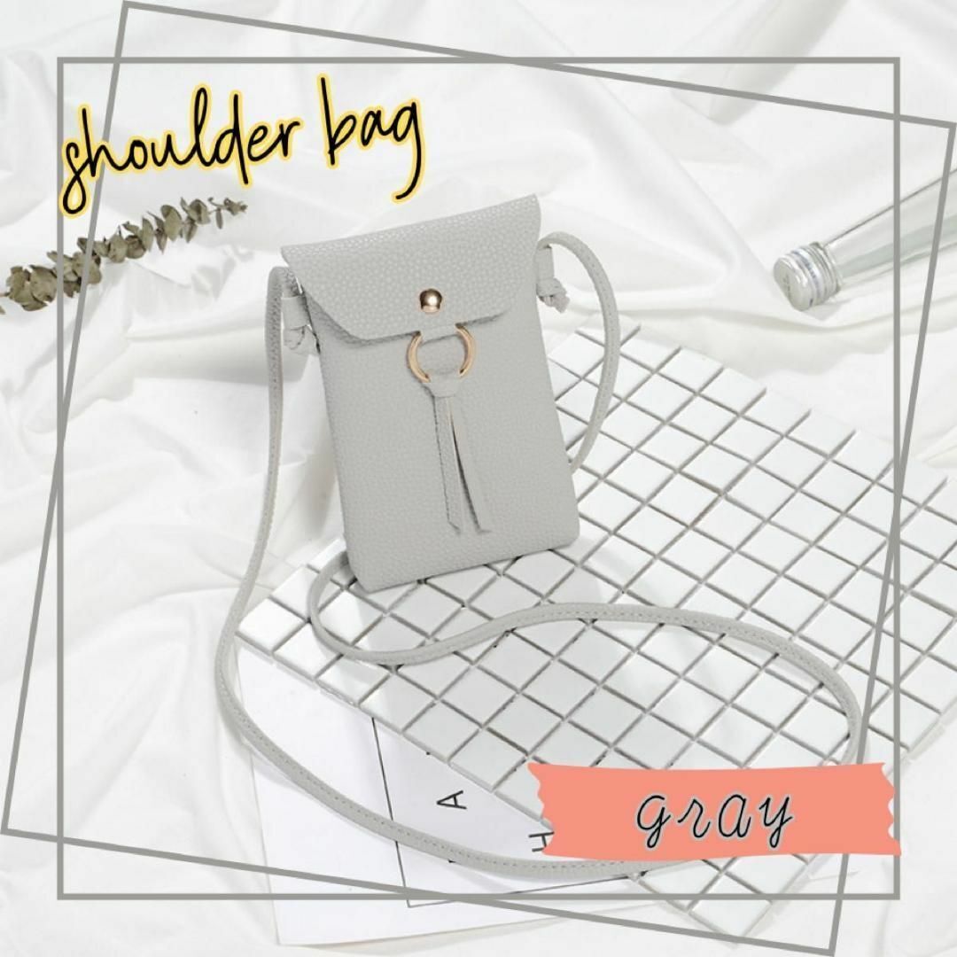 - グレー スマホポーチ ショルダーバッグ ポシェット 薄型 バック シンプル レディース メンズ