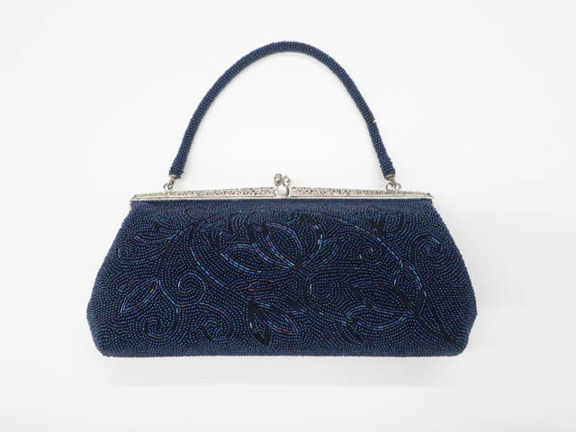 - 《古美術京松》リサイクル着物 和装小物 アンティーク ビーズバッグ 花文 sok7w07-114