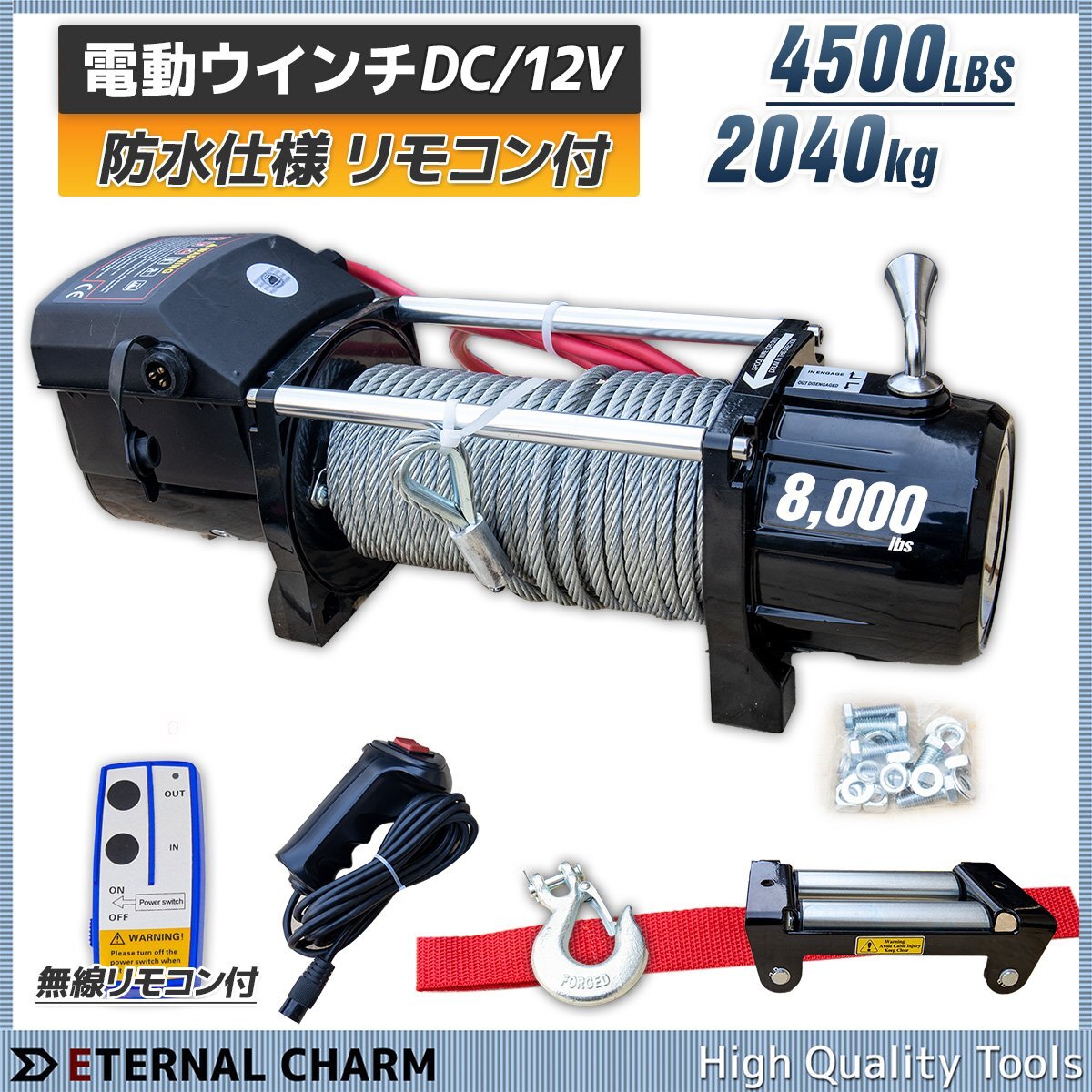 - 【送料無料】電動ウインチ DC12V 8000LBS(3628kg) 車載用 リモコン付き 最大牽引 防水 強力 荷揚げ 引き上げ 運搬 有線コントローラー