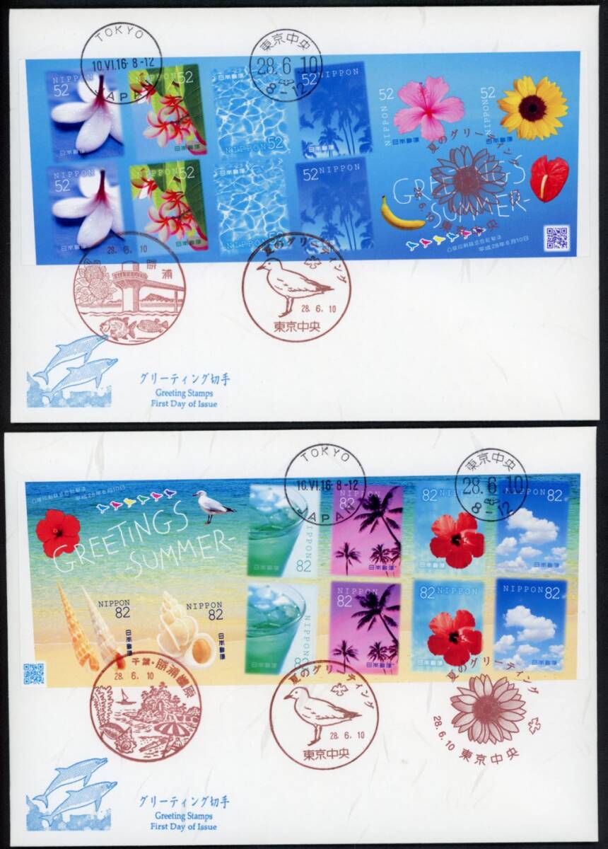 - z10 【FDC】2016夏のグリーティング[勝浦、勝浦鵜原、東京中央/28.6.10/鳴美版](解説書なし)