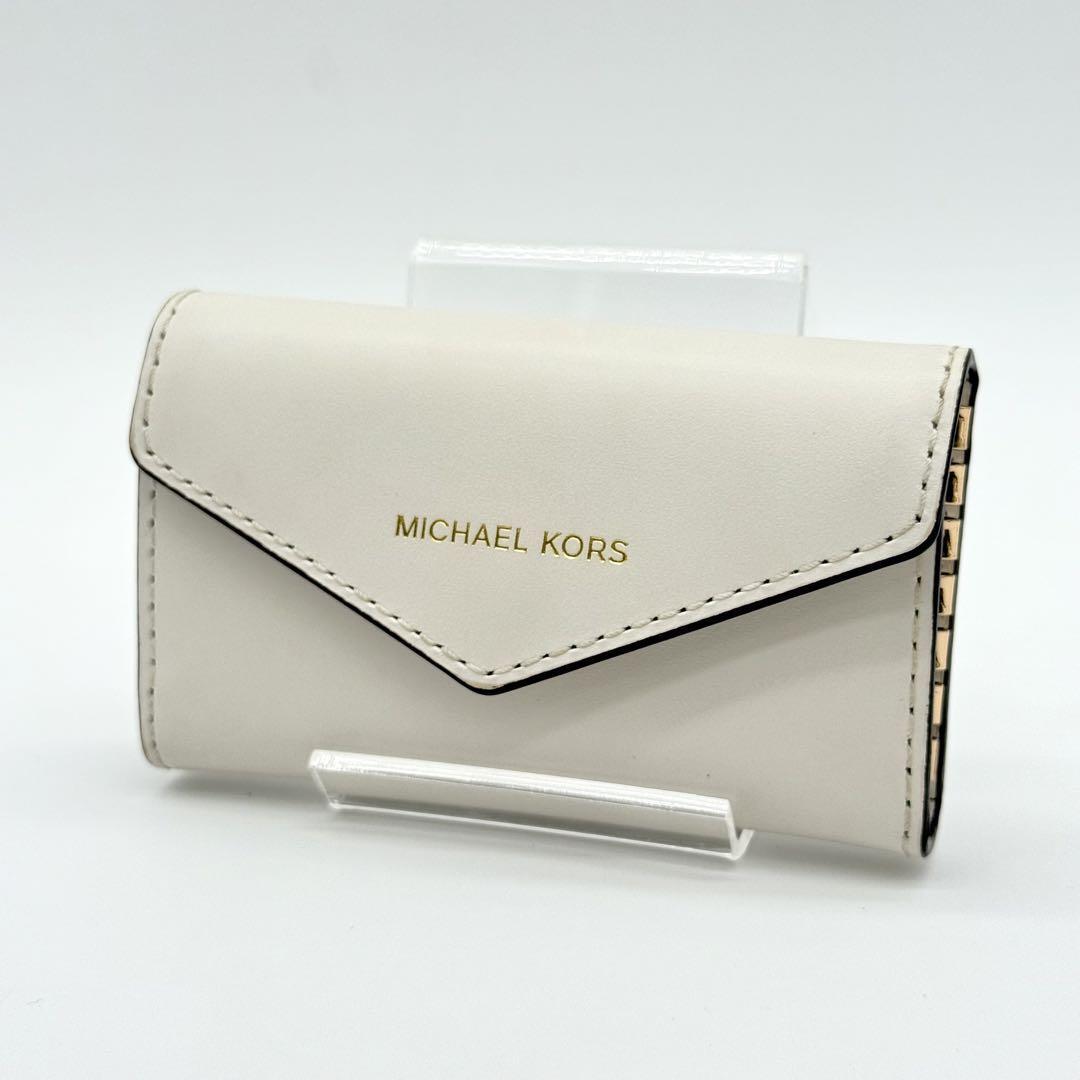 > 【極美品】MICHAEL KORS マイケルコース 6連キーケース 二つ折り キーリング シンプル ロゴ金具 白 ホワイト メンズ レディース DB930707G