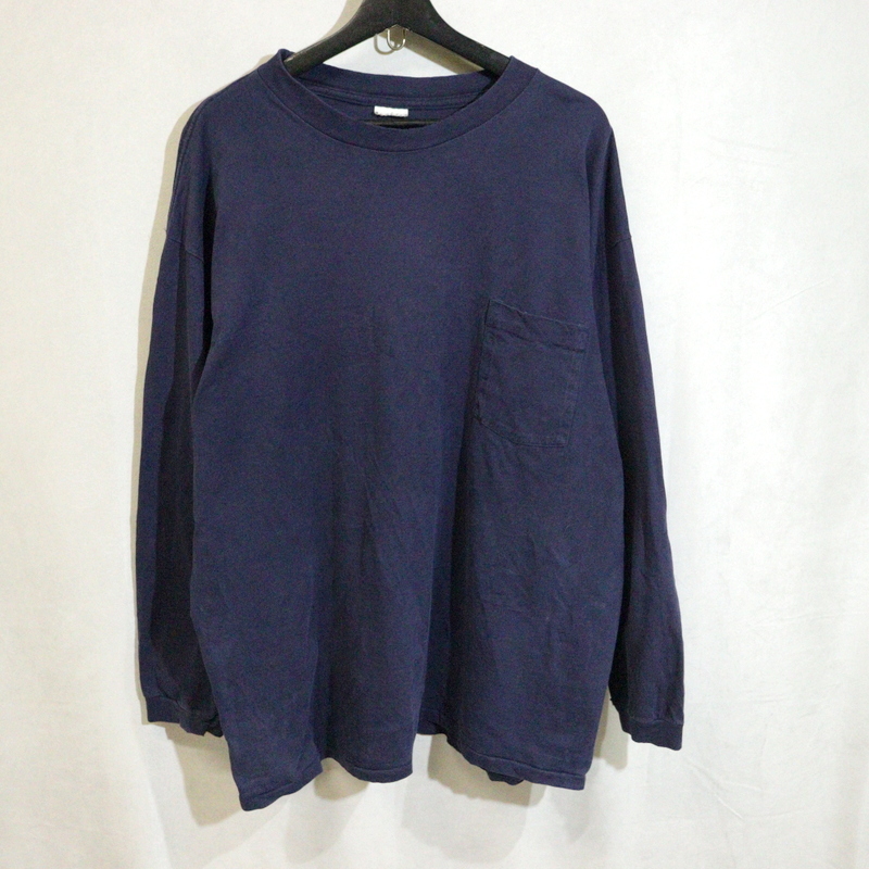 - A599 90sビンテージ 長袖Tシャツ■1990年代製 約XLサイズ ネイビー 紺 無地 ポケT アメカジ ストリート 古着 古着卸 激安 希少 80s 70s 60s