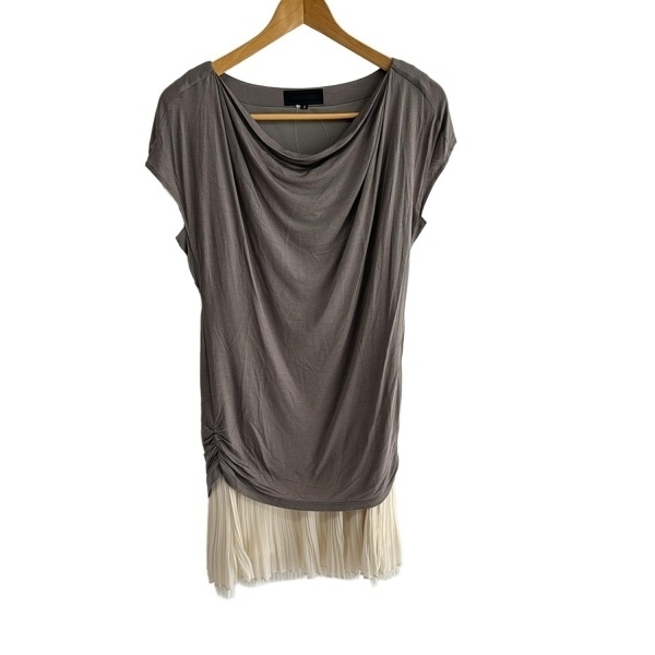 > アンタイトル UNTITLED サイズ2 M - グレーベージュ×アイボリー レディース 半袖/ひざ丈/プリーツ 美品 ワンピース