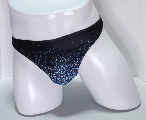 - [新品] ハーフシーム ハイレグ Tバック ビキニ リゾート メンズ水着 ブラック系柄 日本Mサイズ(タグ表記 S)