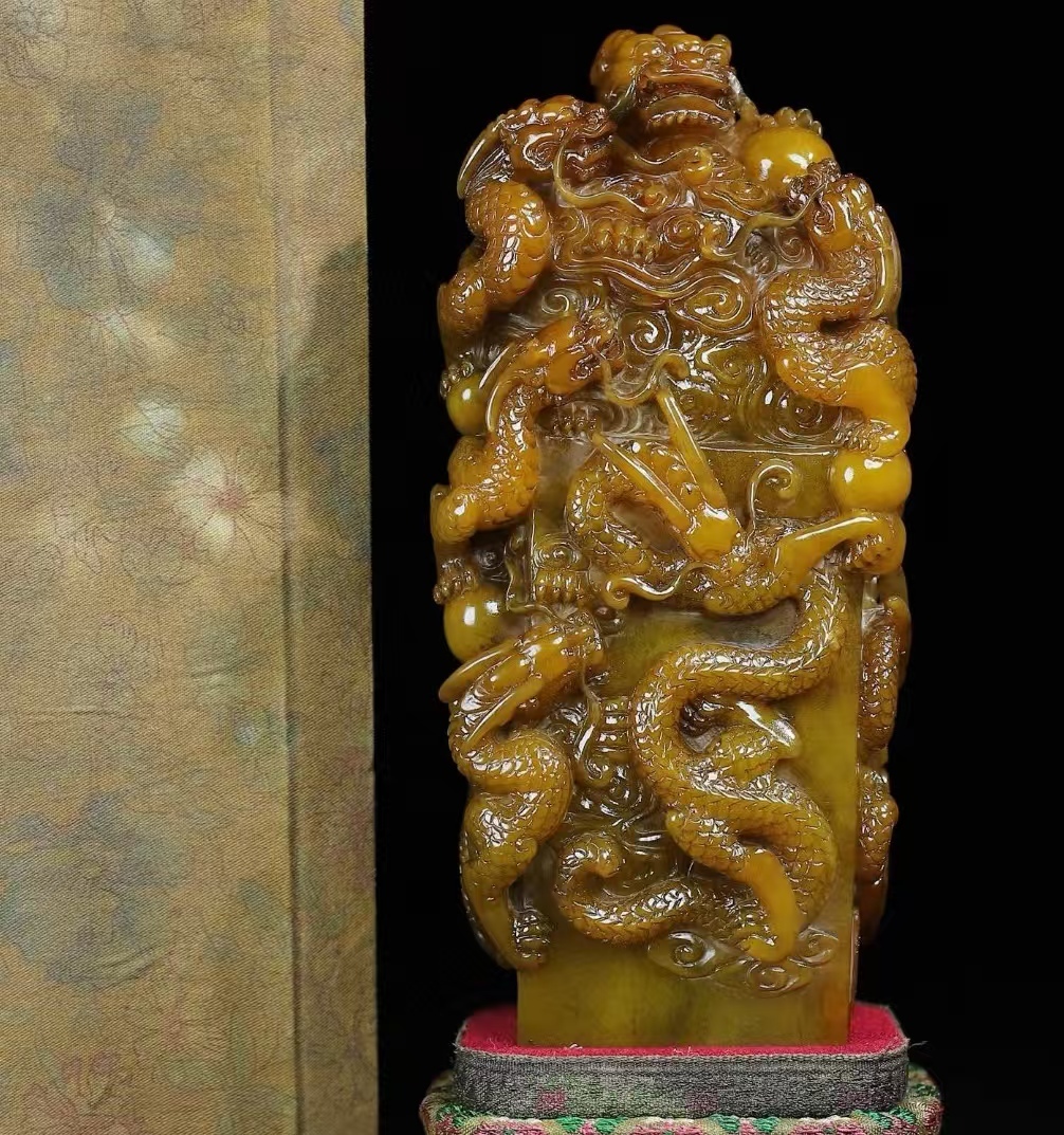 - 印鑒 寿山石 秘藏 清代【九龍宝珠・九五至尊 山水印】 印章 古印材 印鑑の方 老玉 唐物 古玉彫 天然石 稀少珍品 古賞物 古置物 旧蔵 7.15