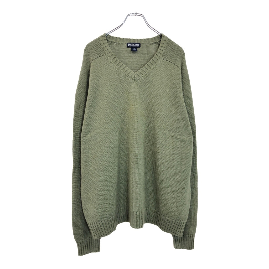 - LANDS' END ランズエンド Vネック コットン ニット セーター ライトグリーン(メンズ XL)中古 古着 U7386