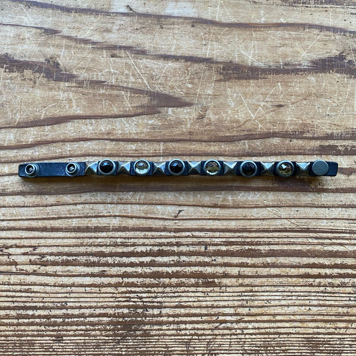 - 【HTC エイチティシー ビンテージ スタッズ バングル ブレスレット レザー ブラック リストバンド ハリウッドトレーディングカンパニー】