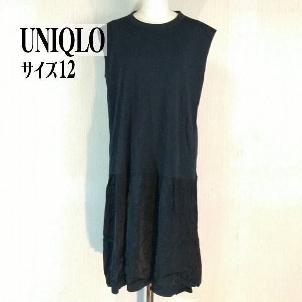 - UNIQLO ニット ノースリ-ブ ワンピース ブラック ローウエスト