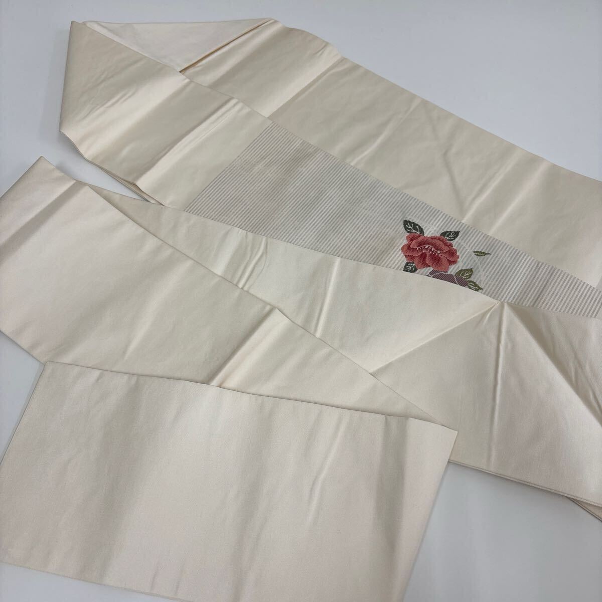 - 名古屋帯 引箔 花柄 上品な織り出し 九寸 正絹 着物 W-2614