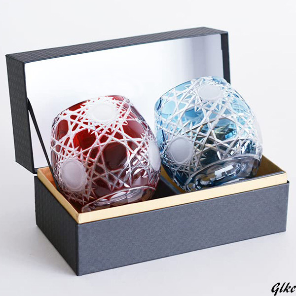 > 【透明感のある上質なガラス素材を使用】 切子 ペアグラス ギフト 贈り物 格子模様 オールドグラス おしゃれ 結婚祝 赤 青 デザイングラス