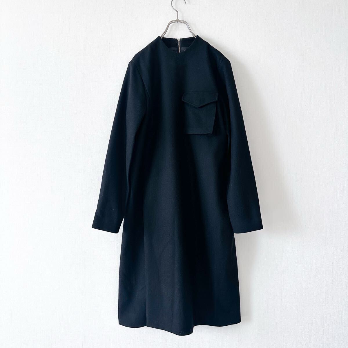 - ★ HYKE(ハイク)/ ウール 胸ポケット ロング ワンピース ブラック サイズ2 M 黒