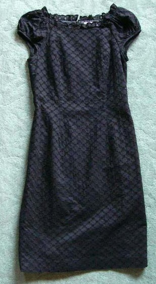 > エムズグレイシー☆綿100%透かし編み刺繍のフレンチスリーブワンピース★ 38★9号★黒★M'S GRACY