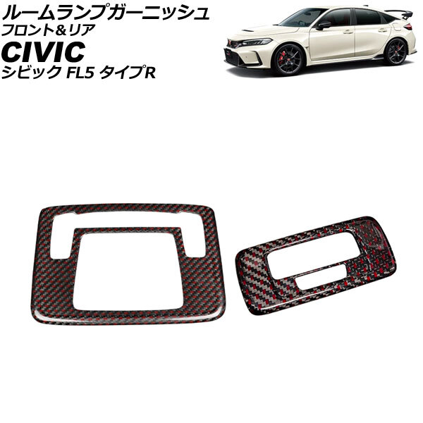 - ルームランプガーニッシュ フロント&リア ホンダ シビック FL5 ブラックカーボン×レッド カーボンファイバー 入数:1セット(2個)