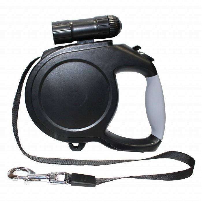 - 夜道も安心 懐中電灯付き♪ロック/自動巻き取り機能 犬用 伸縮 リード 長さ8m/~35kg ブラック 黒 ペット 散歩 小型 中型 犬