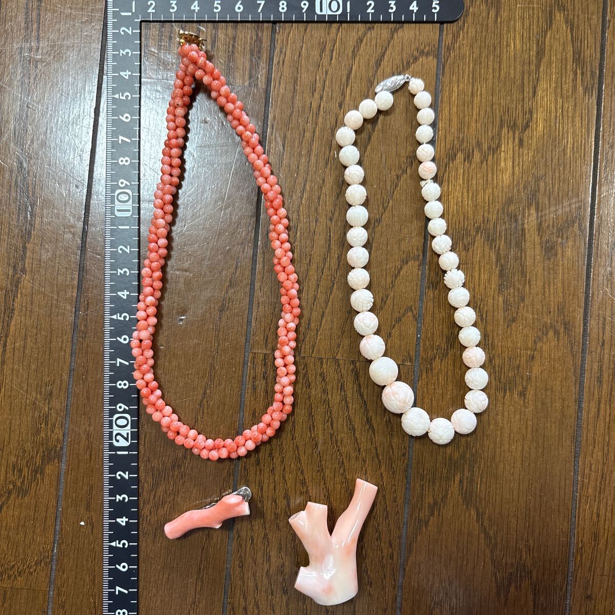 - 珊瑚 サンゴ ネックレス 帯留 アクセサリー まとめて Silva 洋銀 汚れあり 留め具なしあり ★17