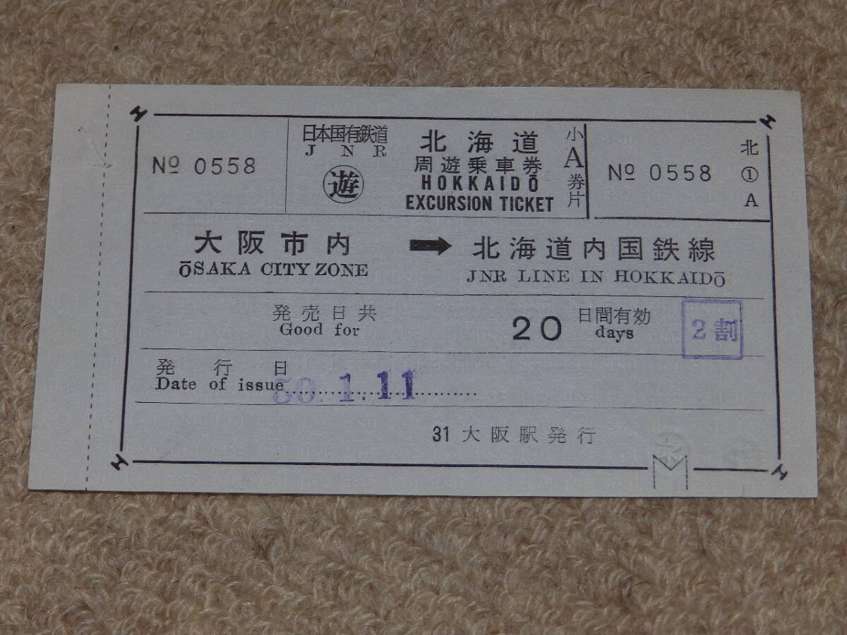 - 北海道周遊乗車券半券 大阪市内→北海道内国鉄線 2割 発行日:昭和50年1月11日 日本国有鉄道(国鉄) 0558
