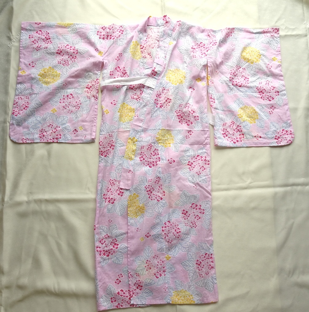 - 浴衣★女の子★紫陽花★ピンク系★リボン帯セット★100