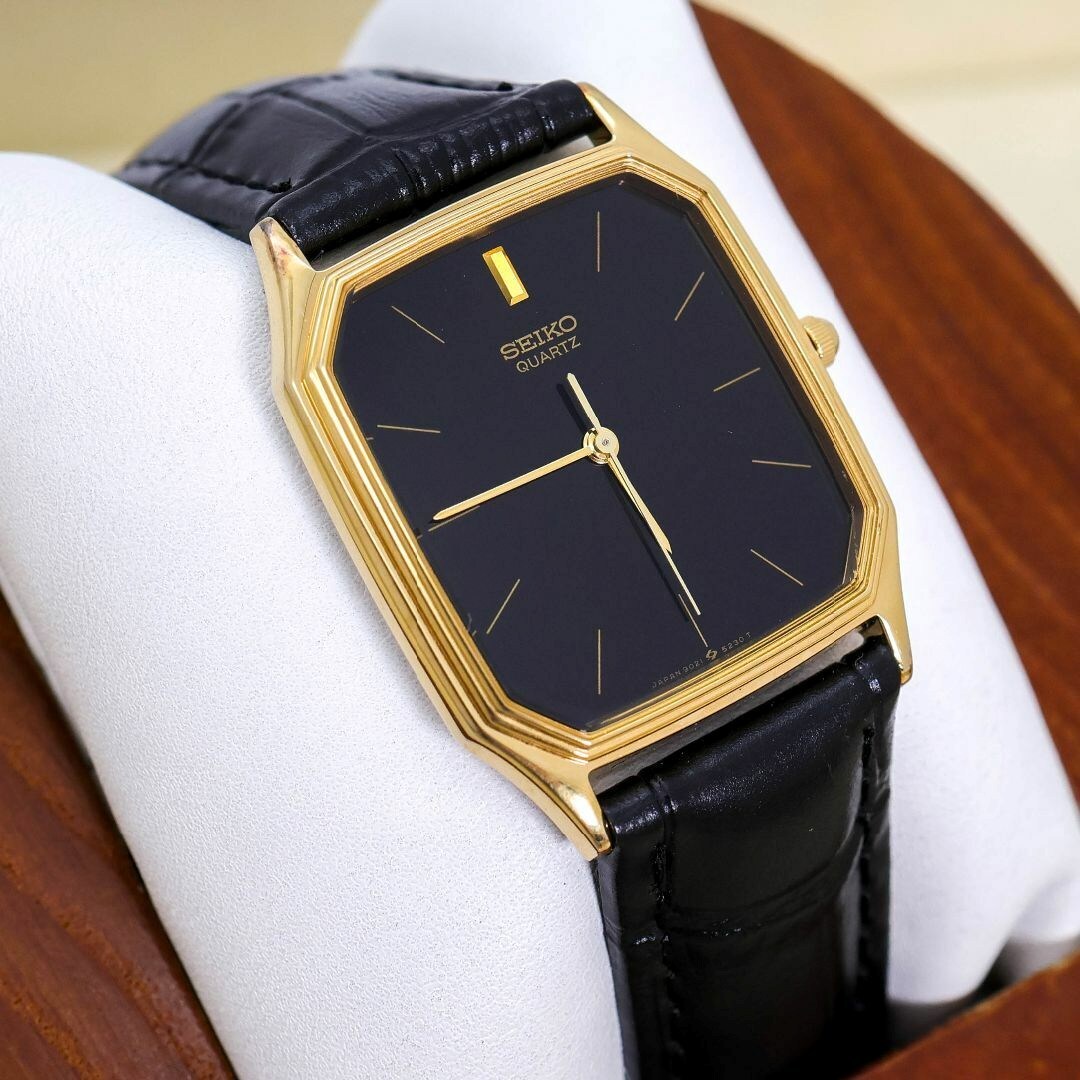 - 稼働 SEIKO 腕時計 オクタゴン 黒文字盤 新品電池 ヴィンテージ 2026
