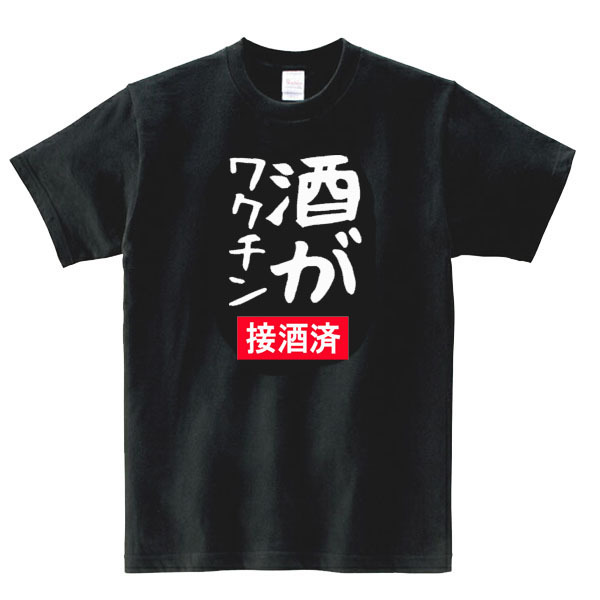 > 【パロディ黒M】5oz酒がワクチンロゴTシャツ面白いおもしろうけるネタプレゼント送料無料・新品