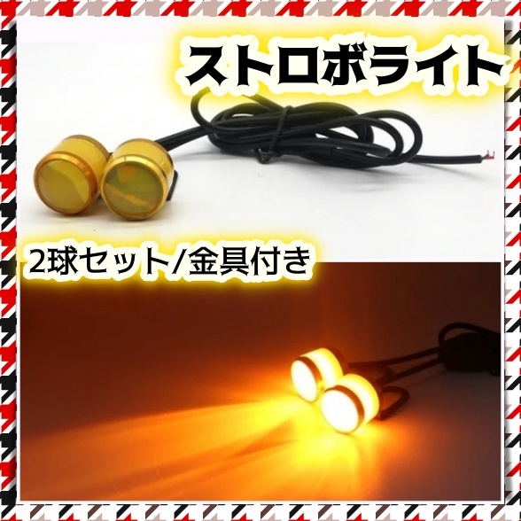 > 新型 LED ストロボ ライト 2球セット ステー付き イエロー アンバー 黄色 フラッシュ 点滅 フォグ バックランプ ミニライト 12V 汎用 車