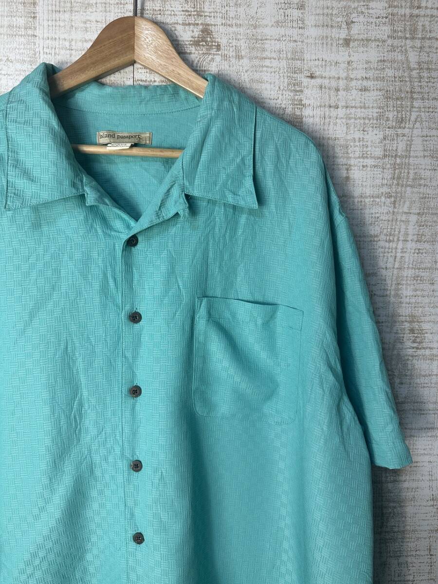 > ☆US古着 アロハシャツ 半袖 シャツ 柄 オープンカラーシャツ ポケット ブルー青グリーン系【2XL/XXL】レーヨンポリエステル ◆5051◆