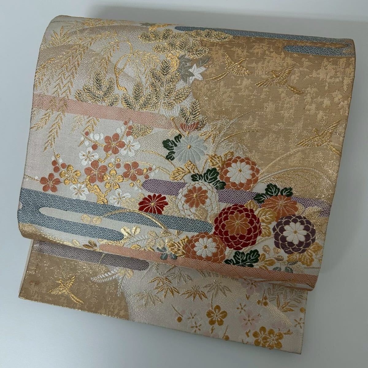 > 袋帯 正絹 蒔絵 唐織 金糸に花 上品 六通 W-2842