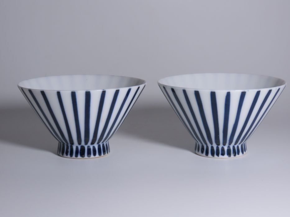- 作家物の茶碗.染付.使用品.一対で傷はありません。