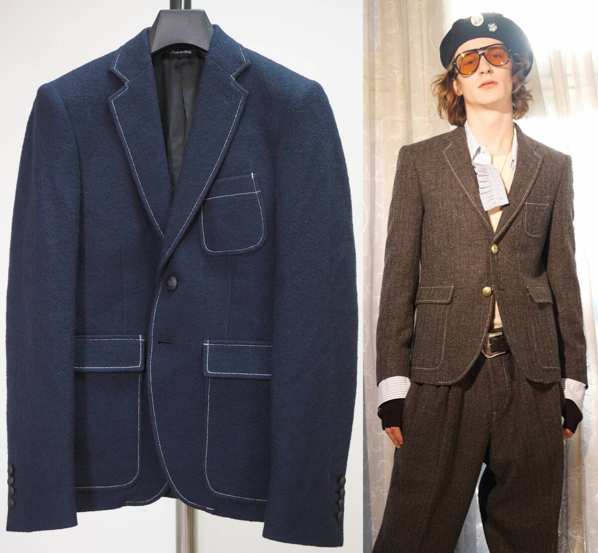 - 未使用品 ANDREA POMPILIO アンドレアポンピリオ 17AWメルトンステッチジャケット44紺 Italy製