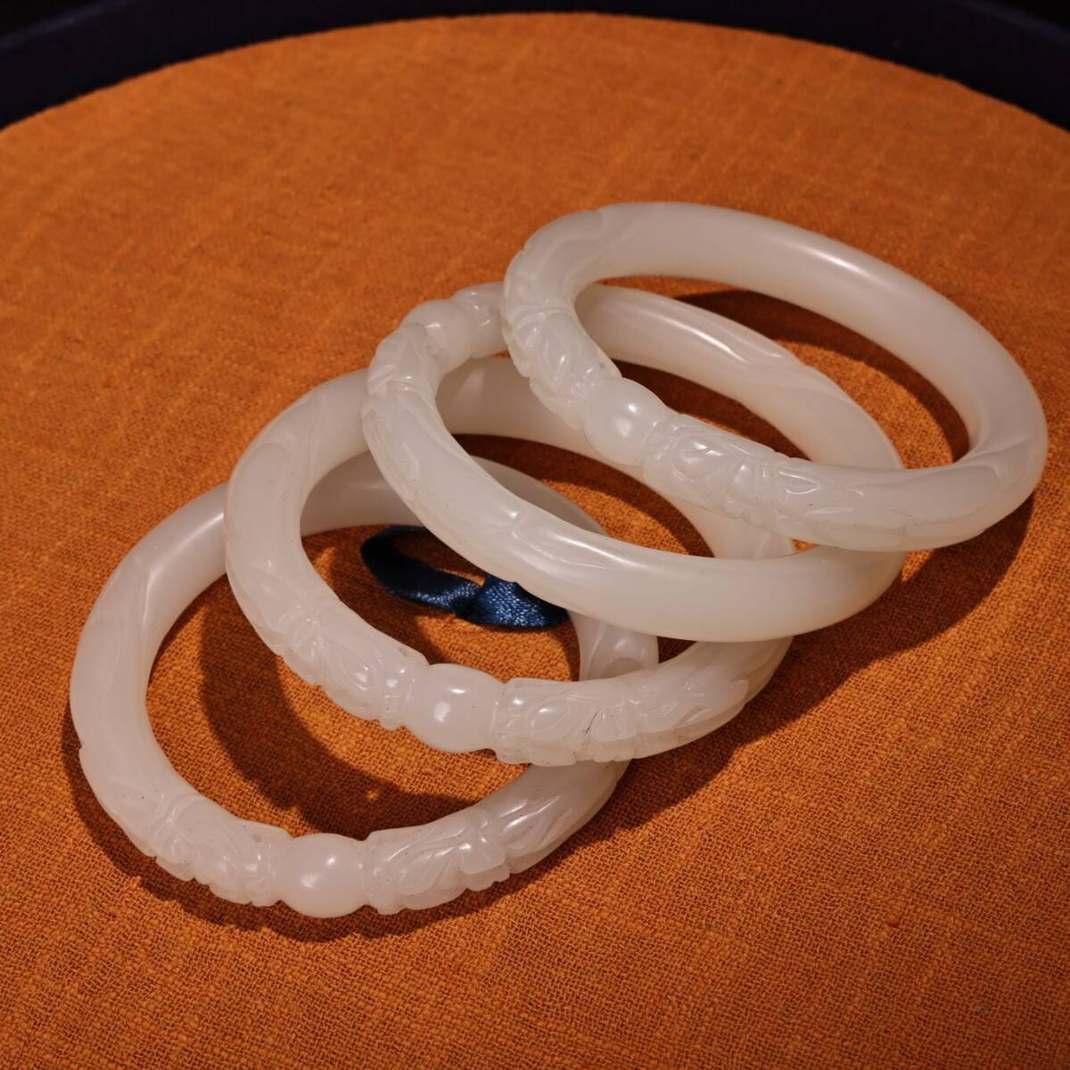 - 【仁】『和田玉製・細密彫・龍頭腕輪・箱付・根付・裝身具』極細工 古董品 中国古玩 古美術 古美味 時代物 旧家蔵出