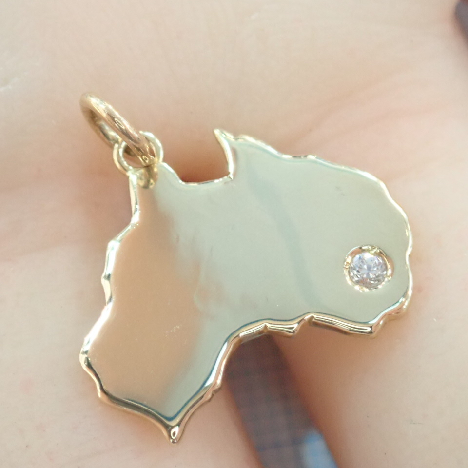 - ■K18YG オーストラリア大陸モチーフ ペンダントトップ/ダイヤモンド1石 3.0g■中古磨き仕上げ■AUSTRALIA■