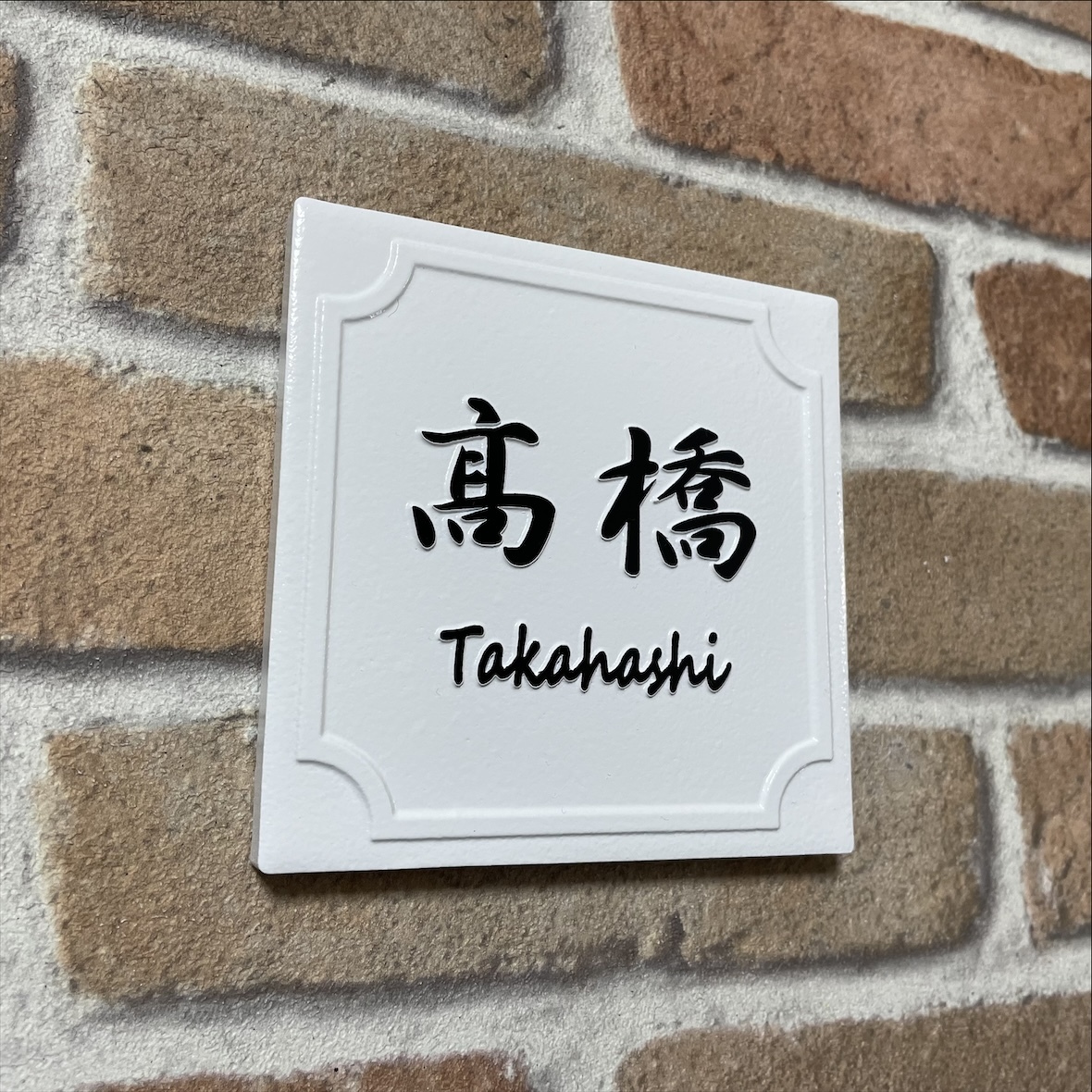 - 表札 見本品処分「髙橋 Takahashi」 (’髙’ははしご高です) 100角タイル ネームプレート 二層浮き彫り表札 風水