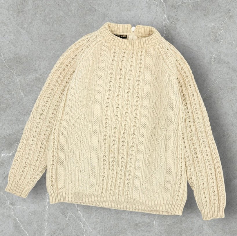 - 80s アイルランド製 GAELTARRA ゲイルターラ ウール アラン フィッシャーマン ケーブル ハンド ニット セーター 36/S ナチュラル 男女兼用
