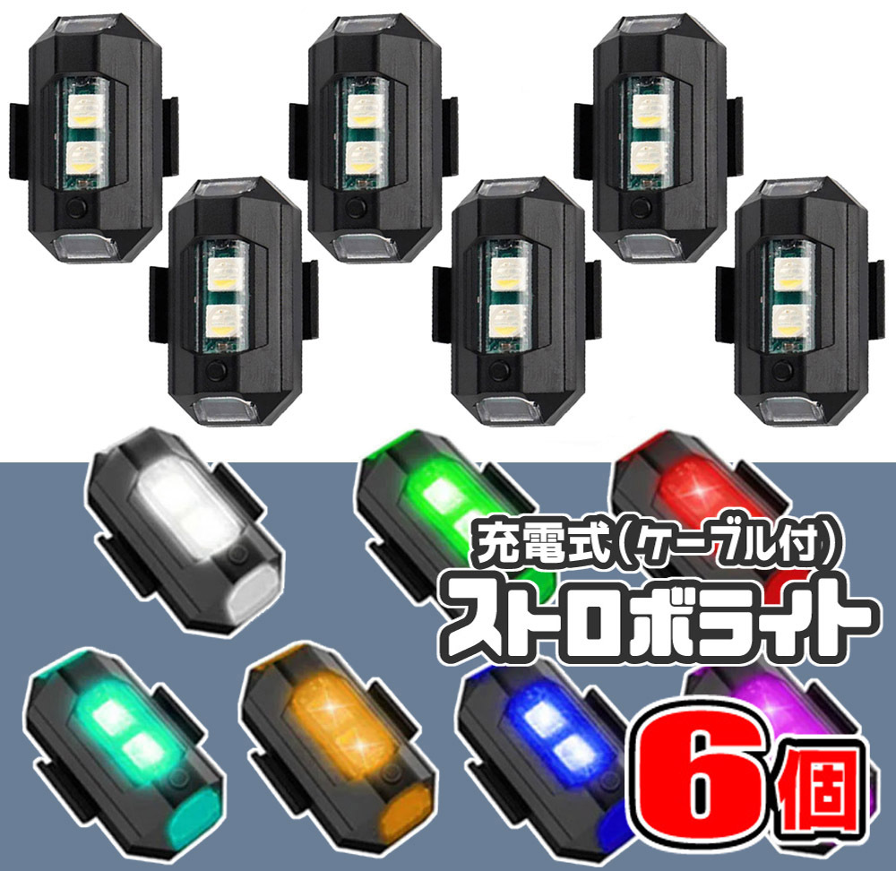 > 【6個セット】 LED 7色 ストロボライト フラッシュランプ ★ USB充電式 充電ケーブル付 / 配線不要 / 7色のLED点滅発光