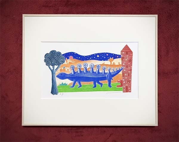 - 綿引明浩●真作●わたびき あきひろ●インタリオ版画 A.P直筆サイン有■タイトル『せびれ家族』注:詳細必読■西武美術館版画大賞優秀賞など