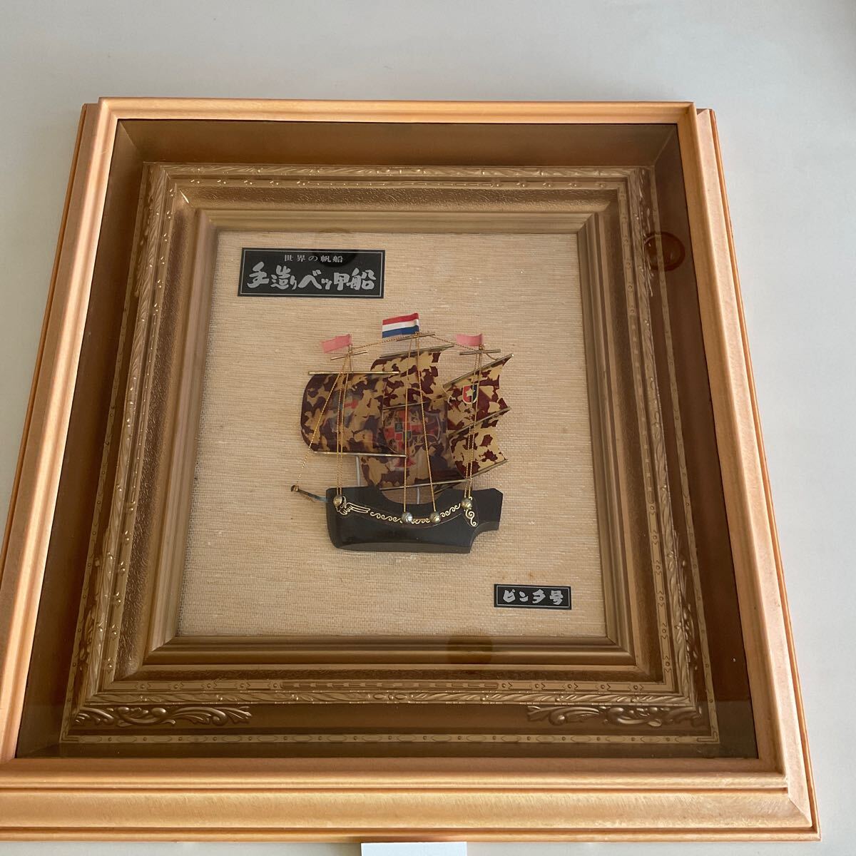- ★手造りべっ甲船★世界の帆船★ビンタ号★宝船★ 本べっ甲★ 壁掛け★蔵出し★1G−060★ インテリア★ 工芸品★