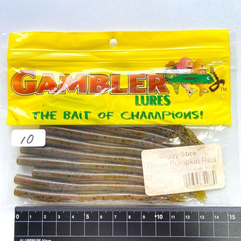 - 813701 新品 ギャンブラー ジギースティック 10本 #グリーンパンプキンレッド GAMBLER Giggy Stick アクションエアテール風の中空ワーム