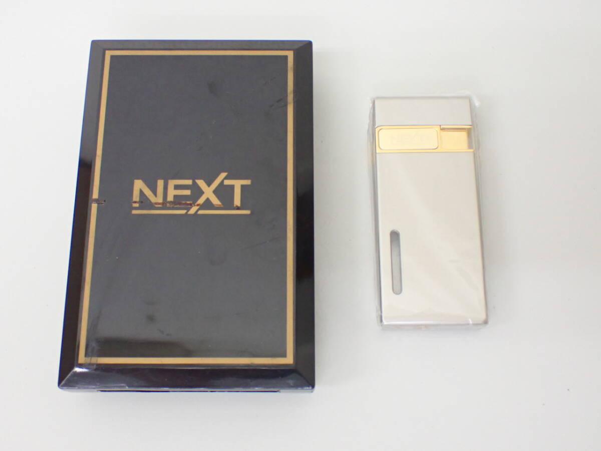 > 200-;(着火未確認) ガスライター ネクスト NEXT シルバー×ゴールド色 プラケース付き ★