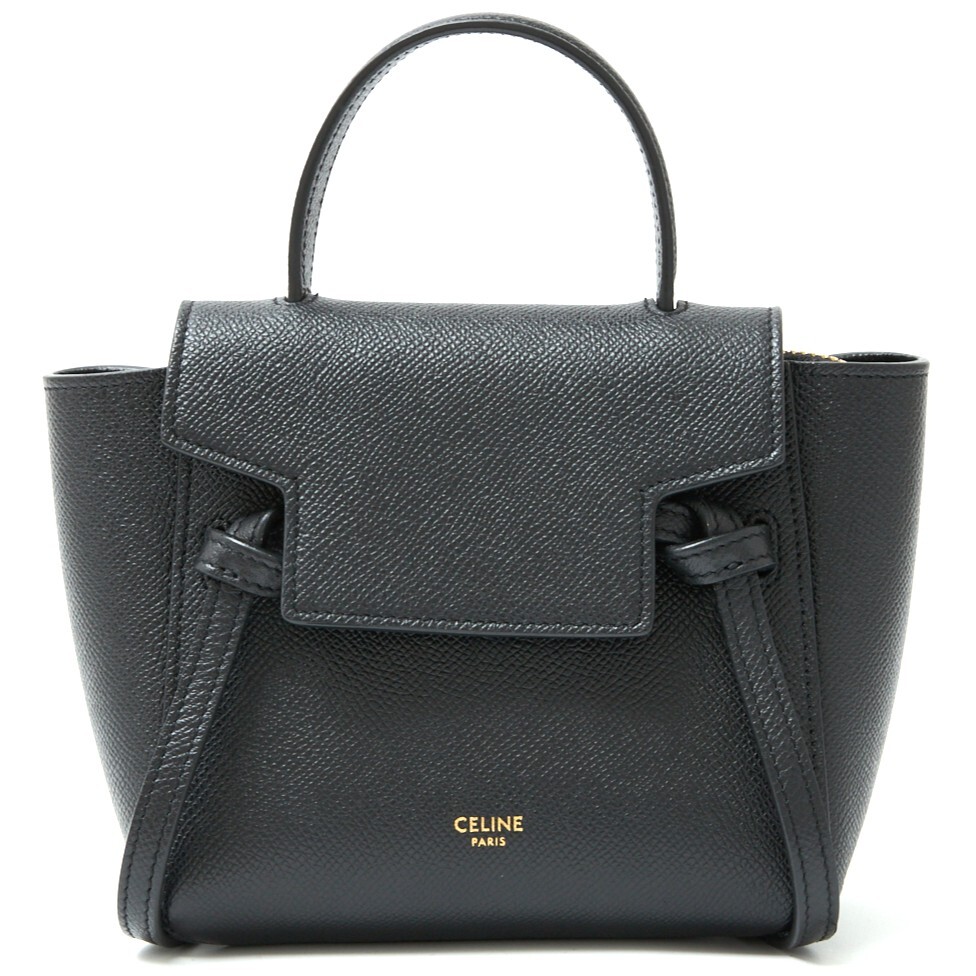 - CELINE セリーヌ ピコ ベルトバッグ 194263ZVA.38NO 2WAY コンパクト ハンド ショルダーBAG レザー ブラック×ゴールド金具 レディース